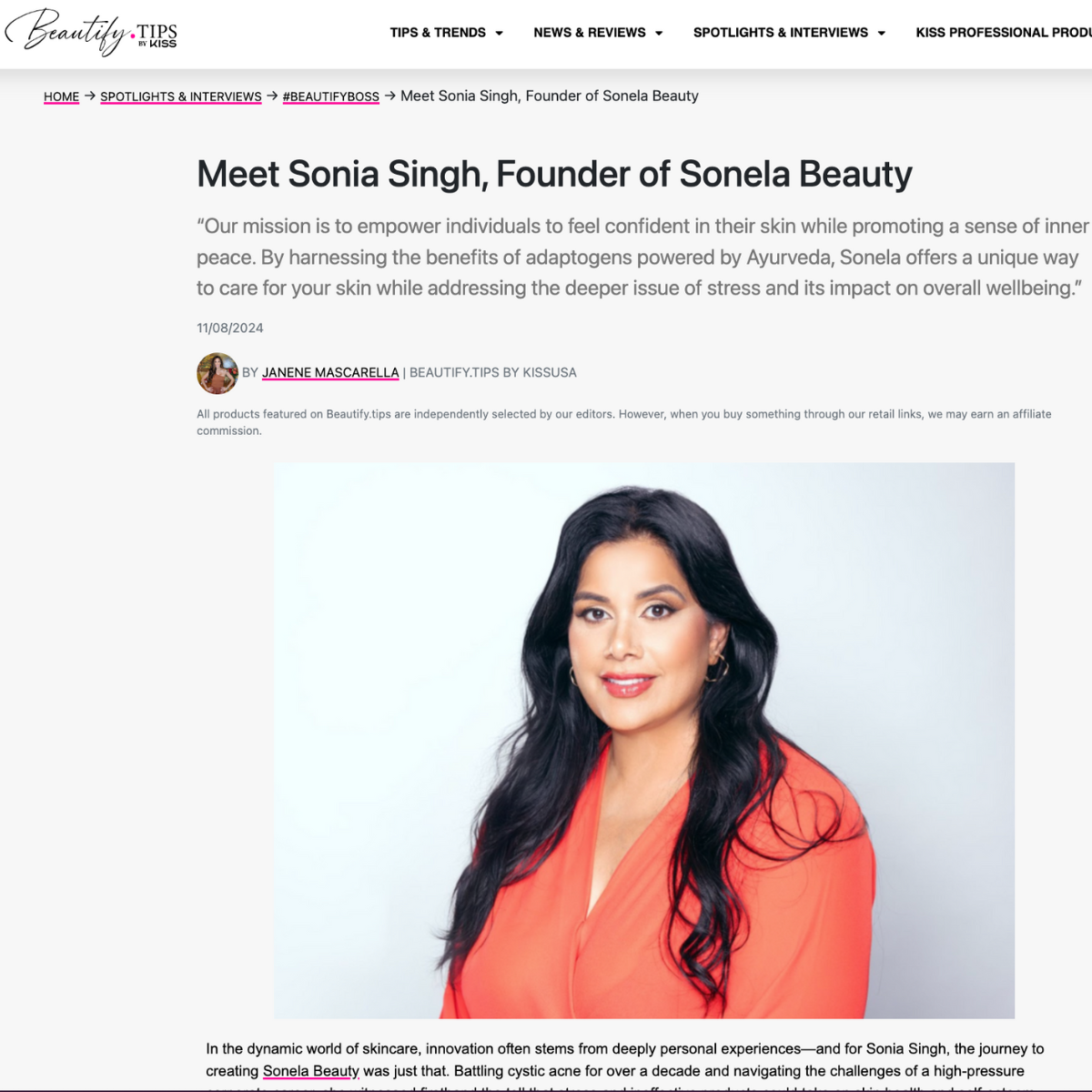 "Sonela is the first brand to address the direct impact of cortisol on the skin, a hormone closely linked to stress. Through my experience with stress-induced skin issues like dryness, dehydration, and acne, I saw a need for products that target what we often refer to as ‘Cortisol Face’"