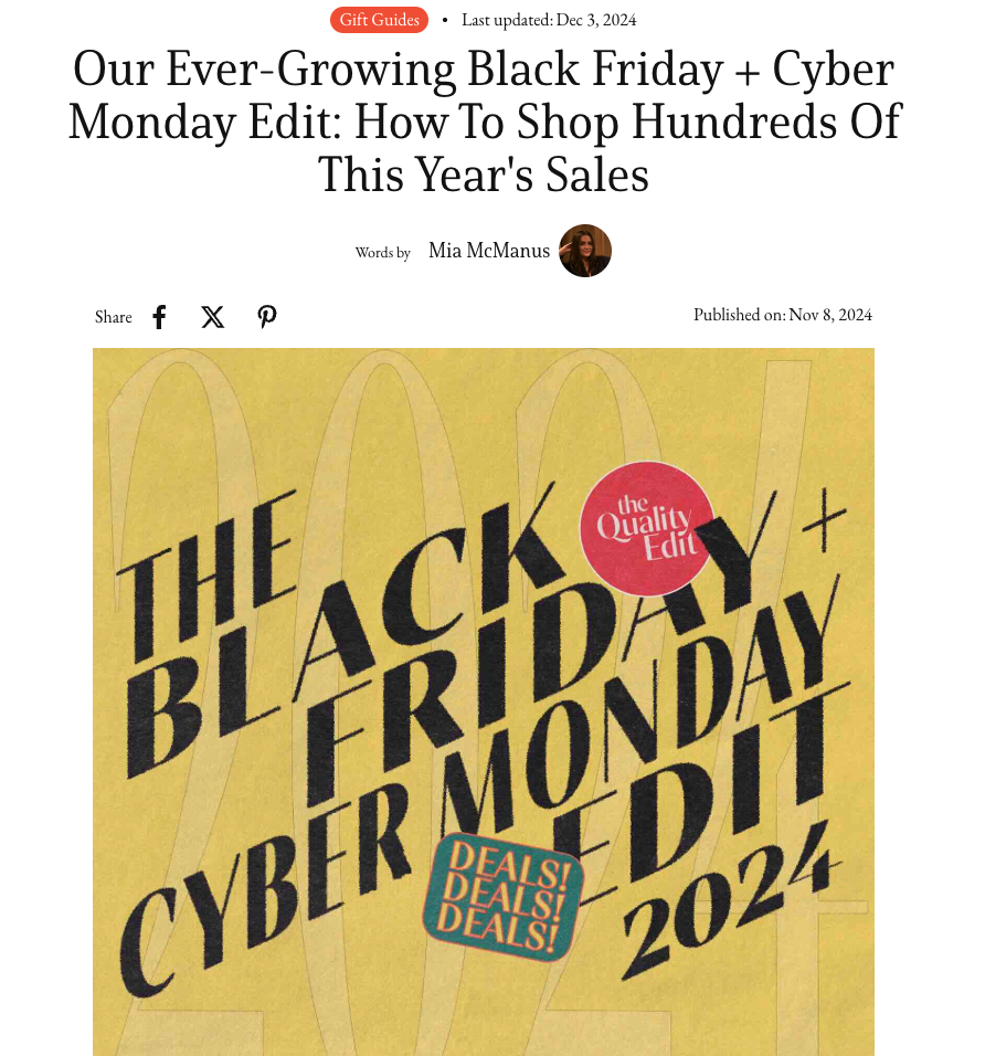 "The countdown to the holidays has officially begun, and Black Friday is the perfect opportunity to snag incredible deals on everything from fashion and beauty to home essentials and wellness products. Whether you're shopping for gifts or treating yourself, our ultimate guide is constantly being updated with new deals. Prepare to shop smart and save big with our handpicked list of unmissable discounts. Let the holiday shopping begin—happy saving!"